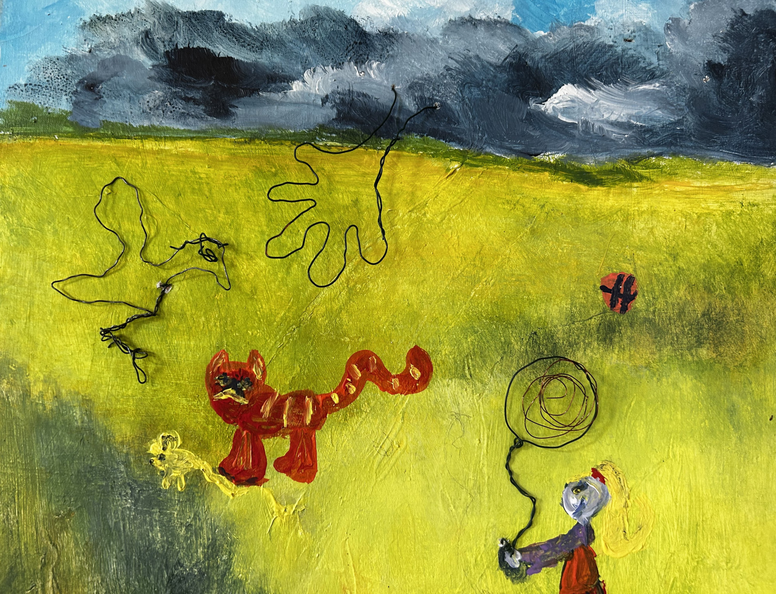 Zusammen wollen wir (Ober-)Flächen entdecken, neue Landschaften denken und uns mit Draht durch neue Welten erheben. Ausgestattet mit vielen Materialien, die die Künstlerin für ihre Ausstellung nutzt und dem ein oder anderen Ratespiel wollen wir unserer eigenen Leinwand neues und (un-)wirkliches Leben einhauchen.