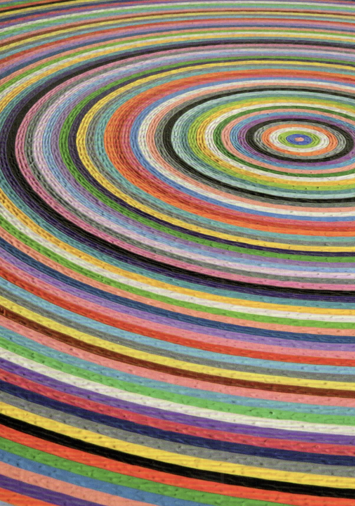His large-format circular paintings with a diameter of two meters are constructed like the annual rings of a tree. They captivate the eye and, due to their size, allow an almost physical immersion in their staggered color spaces. At the same time, they significantly mark the exhibition space. The relief-like, haptic surface of the works, which Ekrem Yalcindag applies with a miniature brush made of millimeter-thick paint in an extremely complex painting process, awakens a lasting desire to touch them.