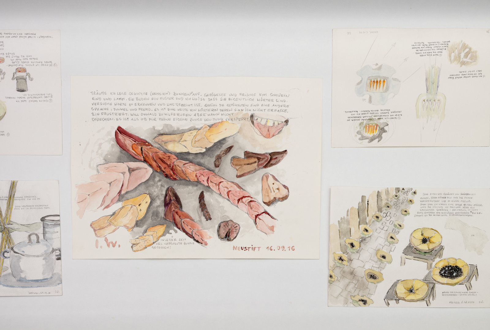 With the same attentiveness, the exhibition also looks at Wiener’s practice as a filmmaker and additionally presents a selection of her dream watercolors—works in which the artist captures her dreams in image-text arrangements, often depicting absurd, surreal and humorously quirky variations of actual occurrences in her life.