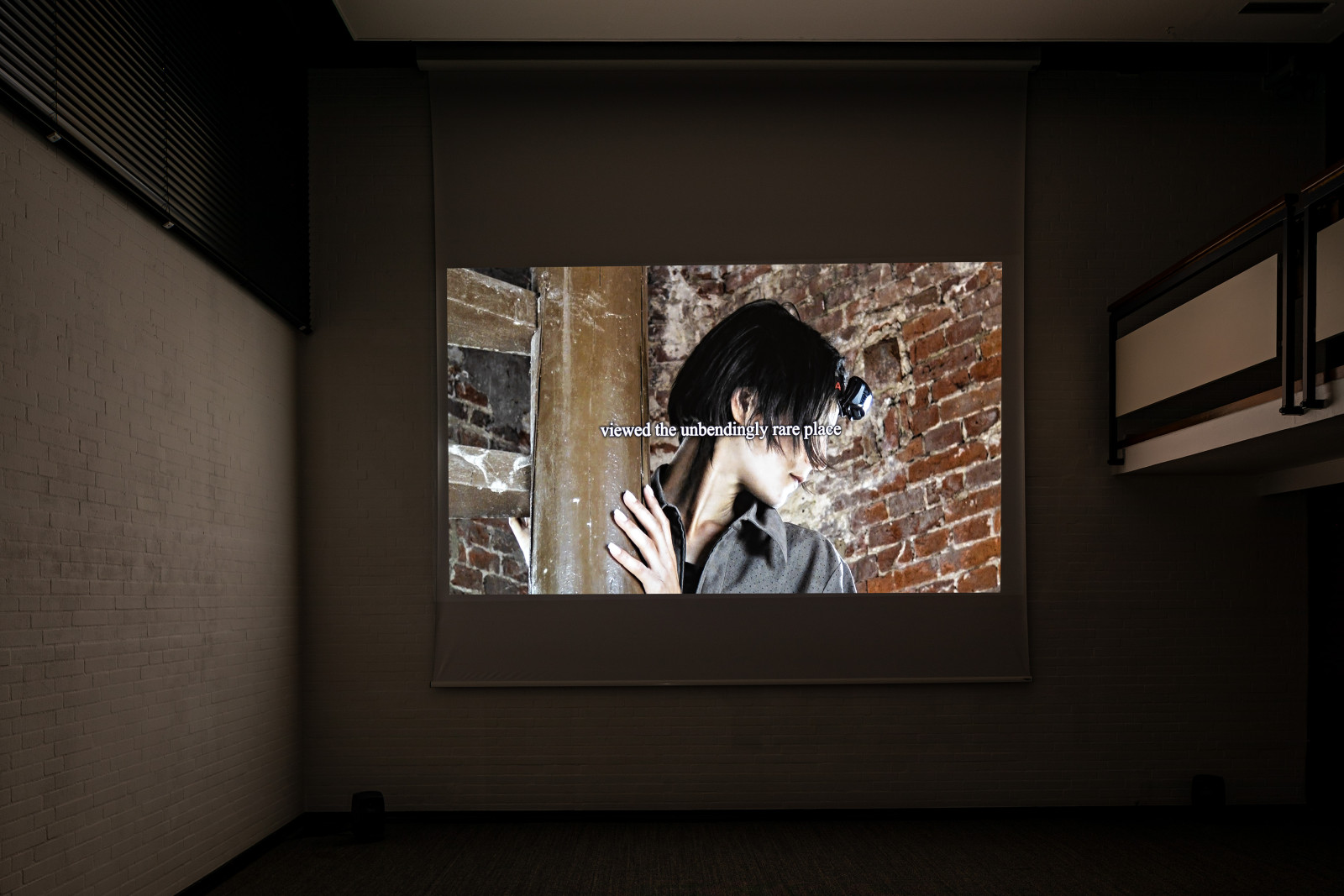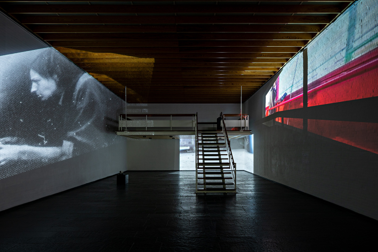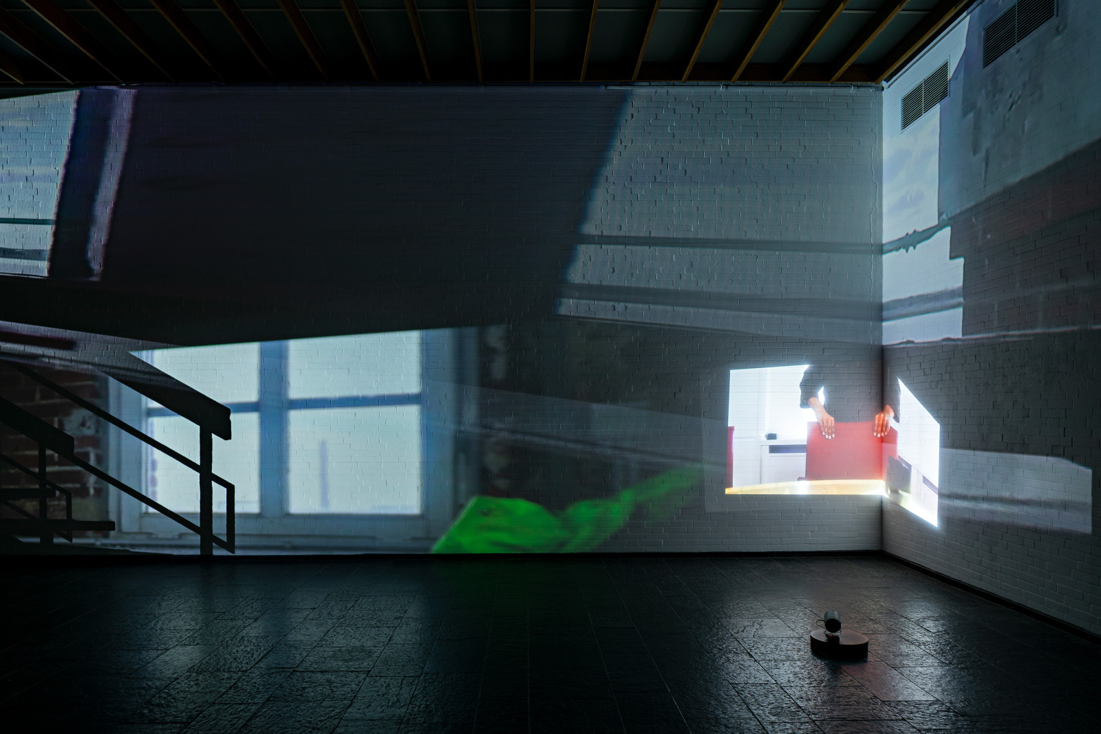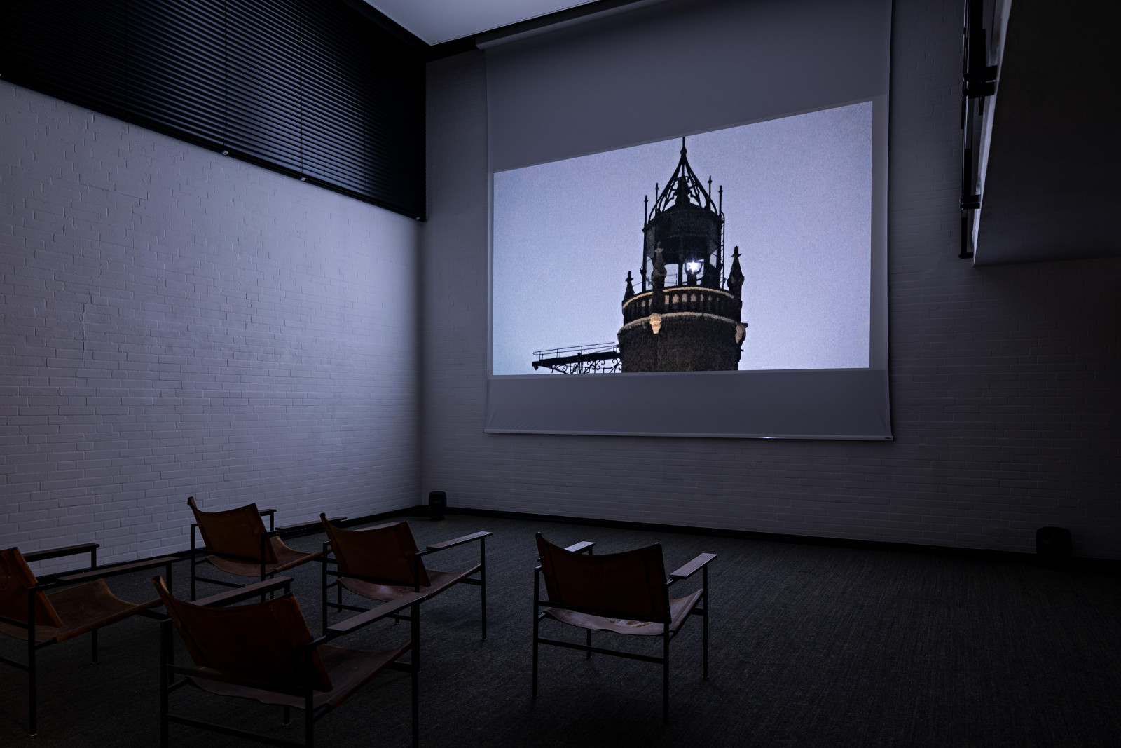 In continuation of her multimedia practice that encompasses performance, film and photography as well as sound, text and language works, Luzie Meyer has developed a sound and video installation for her exhibition Cyclic Indirections that takes as a starting point and setting the Simon Loschen lighthouse in Bremerhaven—the oldest land-based lighthouse on the North Sea coast built between 1853 and 1855 after plans of the architect of the same name. Lighthouses guide, warn of dangers and provide orientation points to determine one’s position. Meyer additionally presents a video work that is also based on image and sound material that she collected in the lighthouse, as well as a series of photographs as a kind of documentation of the origination process. Like further levels, these works are a continuation of the installation, they open it up to something else; they refer to each other, face each other, but also interfere with each other. This moment of interference is a continuous one. Just as the orientation of the lighthouse’s architecture seems to dissolve in the filmic works, the architecture of the Kunsthalle is also undermined by the spatial staging of the installation. A second series of photographs was shot on site in the Kunsthalle and shows a marionette—the director of the institution—which she inhabits, so to speak, and makes her own. Imbued by moments of a poetic and fragmentary language practice, techniques of musique concrète and elements alluding to structural film, Meyer presents a web of works in her show that opens up a space of language, image, and sound unfolding meaning, poetry and reflection, without, however, naming something precise. “Meaning” emerges here in revolving around things, in allusions, in ambivalence, in shreds, gaps and interstices, in orientation and disorientation, that is, not only in what is present, but also in what is absent. It is in the disruption, the interruption, the deconstruction, and the breaks, so to speak—on the levels of image, sound, language and architecture.