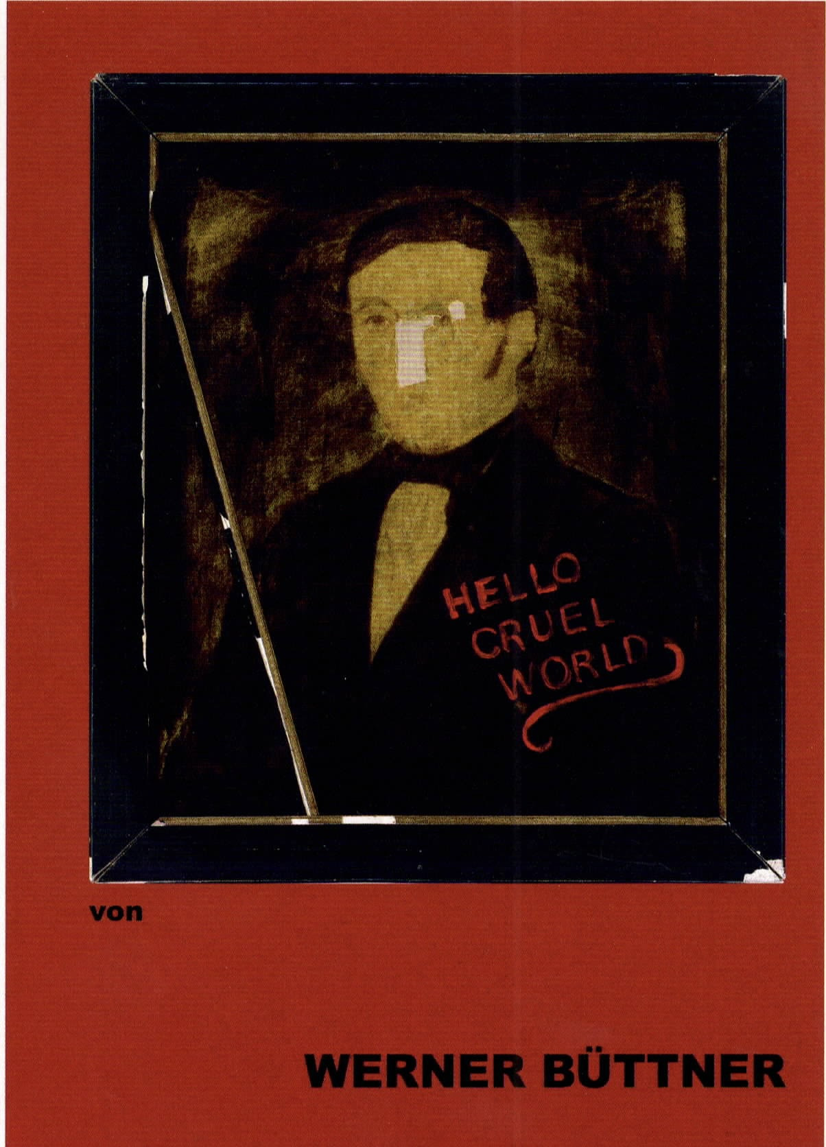 HELLO CRUEL WORLD, there is no hiding, this is a clear statement, no cautious approach, no consideration, no political correctness. Werner Büttner, born in Jena in 1954, professor at the University of Fine Arts in Hamburg since 1989, does not hide. He confronts the visitor directly with his work. Painting, collage, text are without consideration. They are present. They come across as intense and direct. No false modesty, expressive in style, heroic in impetus, but melodramatic? At first glance, it may seem so. Pathos announces itself in the title, in the style of painting. But then? The viewer doubts. At second glance, the interplay of text and image distances the work from the audience’s expectations. Expectations are not met, and the viewer remains unclear about the supposed political message. Rationality is of no help here.